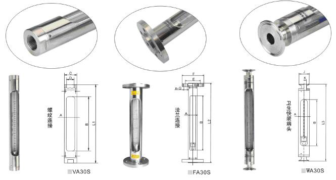 LZB-VA/WA/FA30S系列玻璃轉(zhuǎn)子流量計(jì)為引進(jìn)型不銹鋼玻璃轉(zhuǎn)子流量計(jì),其外殼為不銹鋼304材質(zhì),接口有內(nèi)螺紋、活套法蘭、衛(wèi)生型快裝接頭三種規(guī)格連接新形式,產(chǎn)品輕巧美觀適用。